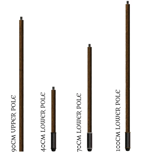 Všechny díly ratiště mají povrch z kvalitní a odolné PUR pěny, která věrně imituje texturu tmavého dřeva, což dodává sestavené zbrani autentický vzhled pro fantasy i historické LARPy. Mají příjemný obvod rukojeti 11 cm. Spojení mezi díly a hlavicí zajišťuje pevný a spolehlivý závit z nerezové oceli 304 (délka viditelného závitu je 2 cm).