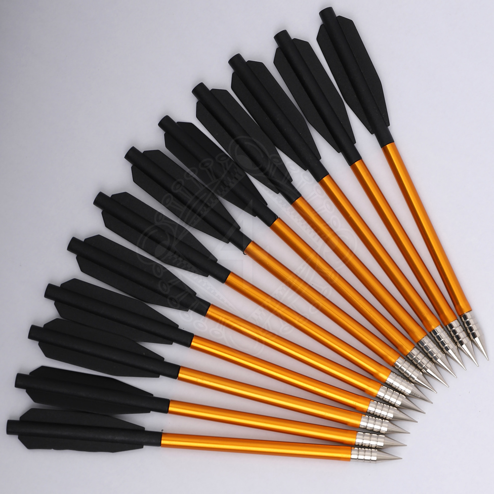 Došly ti šipky v tu nejlepší chvíli? To je noční můra každého střelce, ale s touto sadou dvanácti kusů budeš mít munice vždy dostatek. Tyto hliníkové šipky představují výrazný kvalitativní posun oproti základním plastovým variantám. Díky dříku z lehké, ale pevné hliníkové slitiny jsou stabilnější, přesnější a mají mnohem vyšší průraznost. Zlatá eloxovaná úprava jim dodává nejen atraktivní vzhled, ale i ochranu proti korozi. Jsou osazeny ostrým kovovým hrotem a černými plastovými letkami, které zajišťují klidný let. Je to ideální volba pro majitele pistolových kuší, kteří to se střelbou myslí vážně a chtějí spolehlivé střelivo pro terčovou střelbu na zahradě či střelnici. Více informací k produktu ...