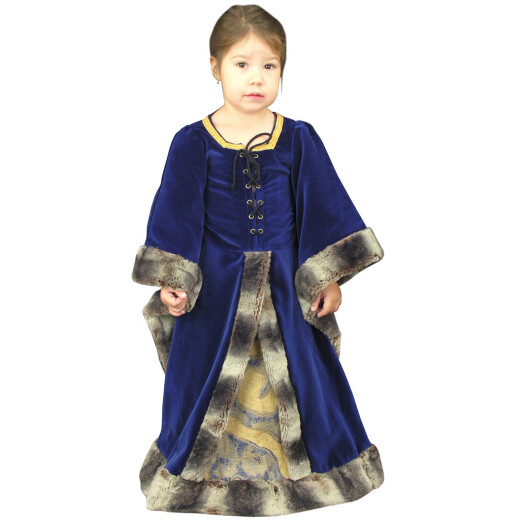 Dětské šaty ve stylu pozdní gotiky tvoří robe šitá ze sametu. Živůtek opatřený vepředu i vzadu šněrováním má dlouhé cípaté rukávy sahající ke kolenům. Dlouhou sukni zdobí klín z odlišné látky. Rukávy a sukni lemuje kožešina. Více informací k produktu ...
