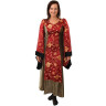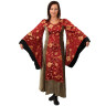 Tyto honosné gotické šaty sahající až k zemi, zvýrazňují svým střihem ženskou postavu. Spodní rukávy jsou úzké a dlouhé, svrchní falešné rukávy jsou cípaté a visí od ramen dolů. Přední díl těchto honosných šatů je zdobený leonským stříbrným prýmkem stejně jako rukávy. Pokud představuje Vaše role šlechtičnu, budete v těchto šatech náležitě elegantní. Jako doplněk Vám můžeme zhotovit stylovou pokrývku hlavy z naší nabídky, kterou barevně přizpůsobíme. Více informací k produktu ...