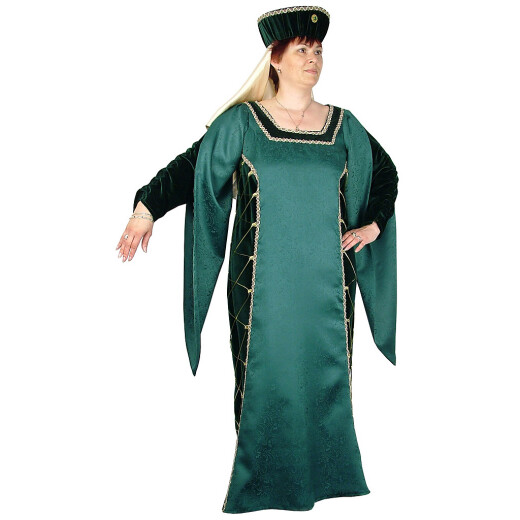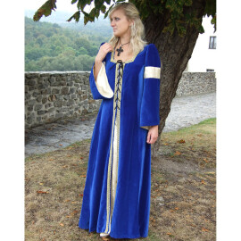 Gotické šaty ve stylu vrcholné gotiky tvoří kombinace spodního a svrchního oděvu. Spodní oděv tvoří forma cotte s dlouhými úzkými rukávy, svrchní oděv ve formě surcotu je po stranách opatřen šněrováním, dlouhé rukávy jsou cípaté. Pokrývkou hlavy je čepec kombinovaný s rouškou. Více informací k produktu ...
