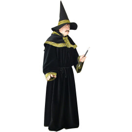 Kostým kouzelníka (čaroděje) tvoří plášť a klobouk. Široký plášť splývající až k zemi má dlouhé rukávy, široký límec a zapínání na knoflíky. Vysoký klobouk protažený do špičky má širokou krempu. Více informací k produktu ...