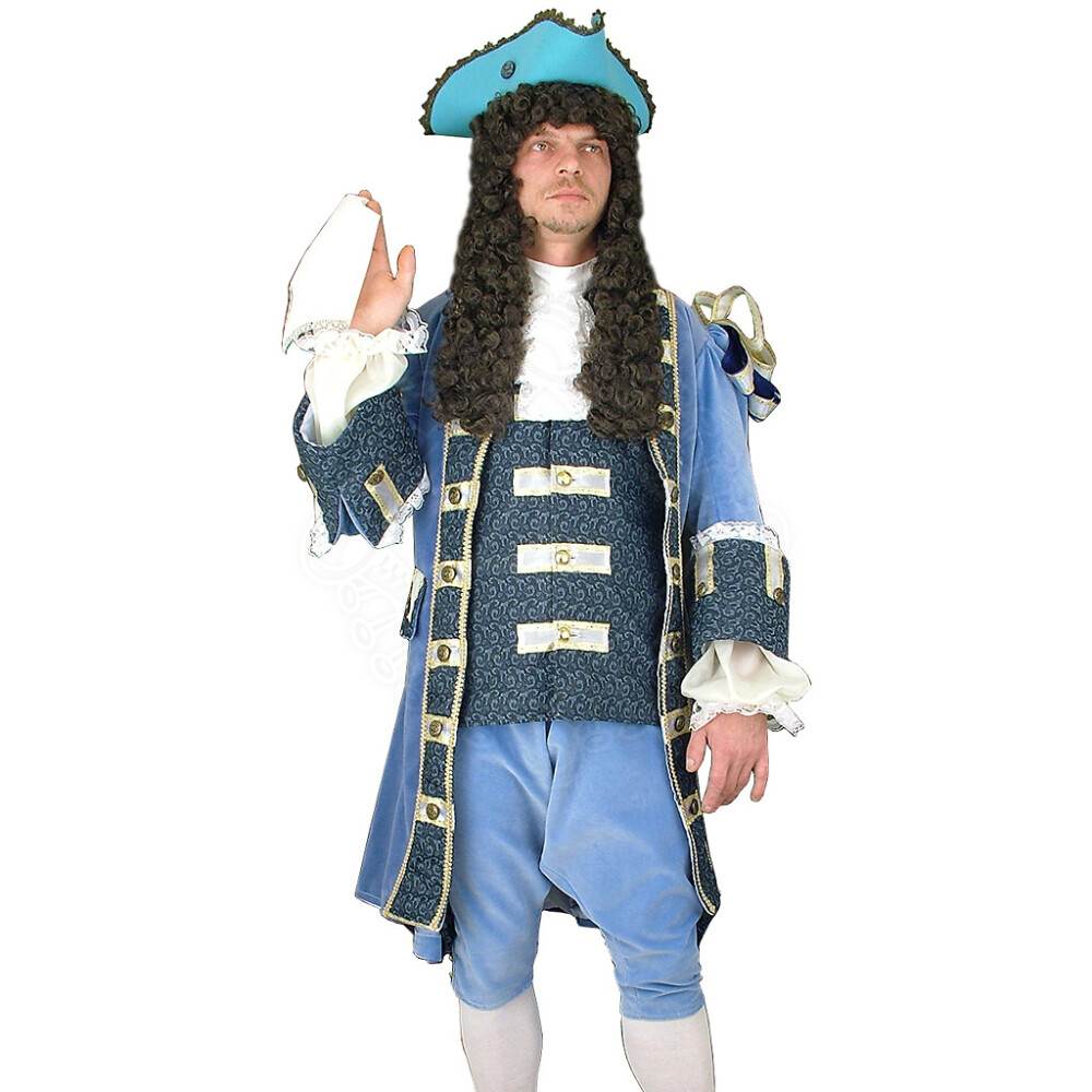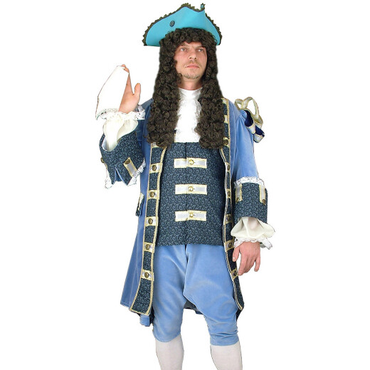 Rokokový pánský kostým ve stylu vrcholného rokoka tvoří košile, která má límec s fiží a dlouhé rukávy zakončené krajkovou manžetou. Vesta sahá do pasu a má dekorativní zapínání. Kabátec typu justaucorps má ozdobné zapínání a dlouhé rukávy s výraznými manžetami. Kalhoty sahají ke kolenům. Rokokový pánský kostým doplňuje třírohý klobouk. Více informací k produktu ...