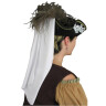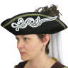 Tento Dámský třírohý klobouk zdobí krajková aplikace, peří a závoj ze šifon (100% VIS).
