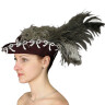 Tento dámský třírohý klobouk z filcu zdobí mašličky a peří. Možné barvy: černá, růžová, modrá, hnědá a světle zelená