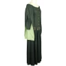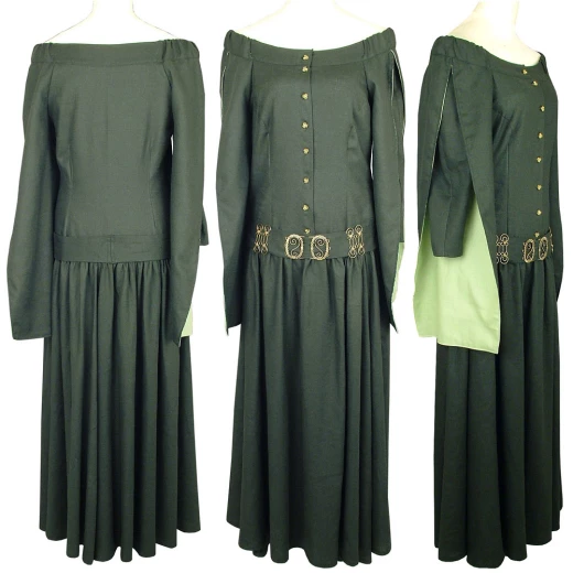 U Gotické šaty s ornamentálně zdobeným páskem svrchní sukně ve formě surcotu má hlubokou dekoltáž, zapínání na knoflíky, dlouhé cípaté rukávy a sahá až k zemi. V úrovni boků je přepásaná páskem. Více informací k produktu ...