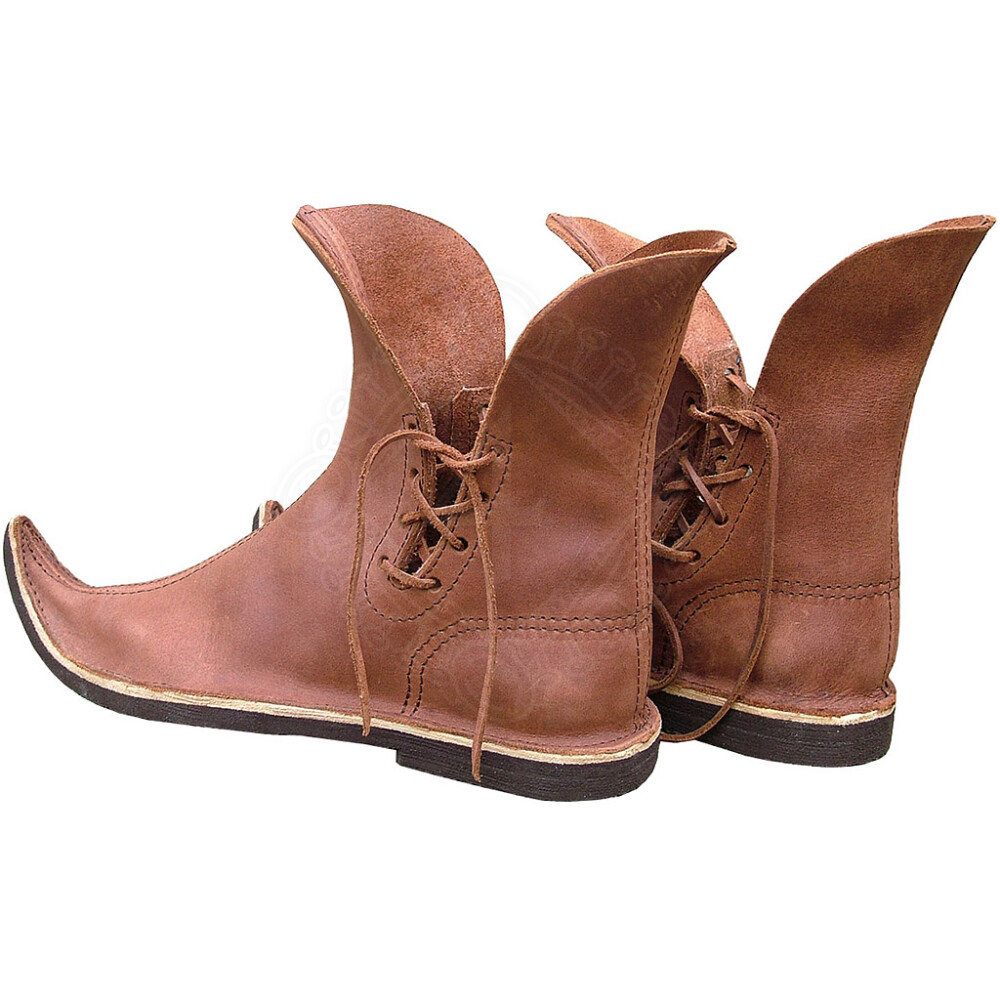 1xKotníkové boty ve stylu gotiky mají zašpičatělou a zdviženou špičku, po stranách šněrování a vystřiženou manžetu. Tyto škorně, boty ze 14. a 15. století byly zhotoveny podle historické předlohy ze 14. -15. století. Více informací k produktu ...