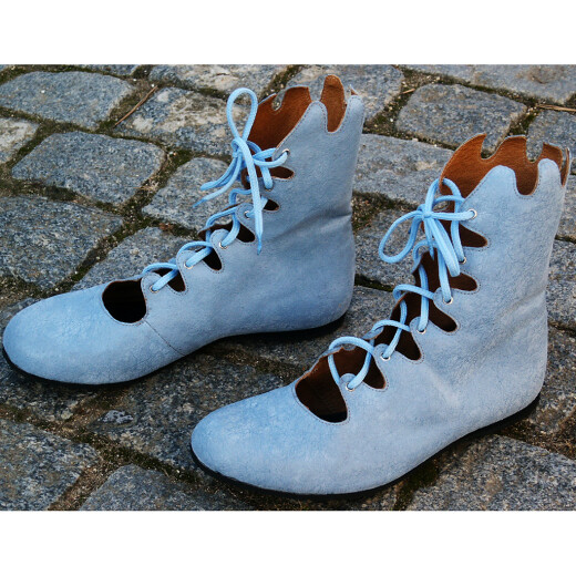 Měkké kožené boty sahají ke kotníku, uprostřed a na lemech jsou ozdobně vystřihované. Dekorativními výstřihy uprostřed boty prochází šňůrka, která botu zapíná. Více informací k produktu ...