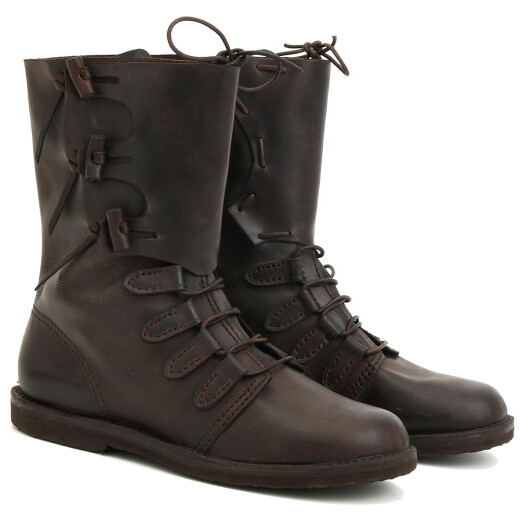 Kožené boty sahají do půli lýtek a uprostřed se zapínají pomocí šněrování. Boty jsou opatřeny krycí částí proti otěru od dlouhých štítů. Jejich standardní výška je cca 28cm. Více informací k produktu ...