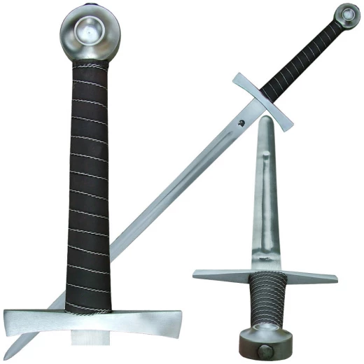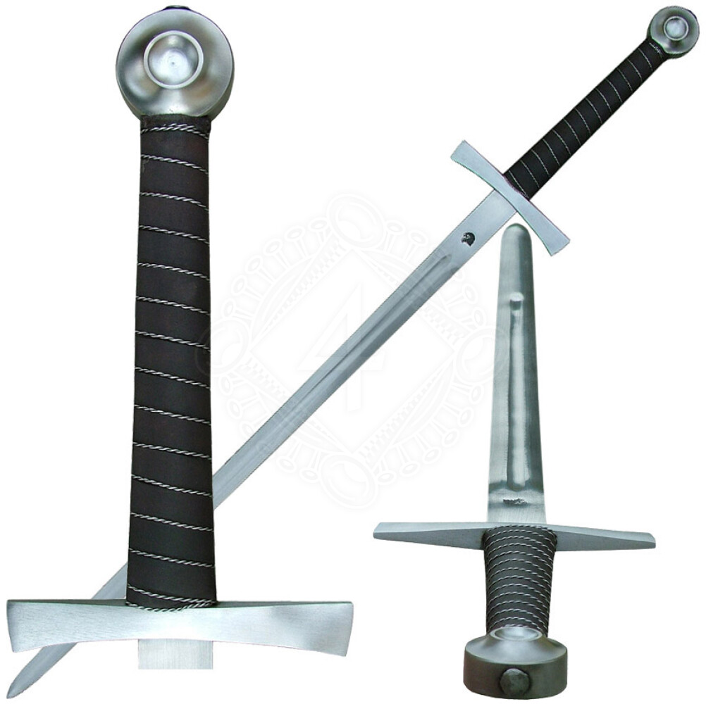 2. Tupá varianta (Třída B): S hranou o síle 2-3 mm a zaoblenou špičkou je tato verze ideální pro kontaktní historický šerm (HEMA) zaměřený na techniky s dlouhým / jedenapůlručním mečem, pro scénický šerm a reenactment. Díky své nižší hmotnosti a dobrému vyvážení je obzvláště vhodný pro technicky náročnější styly šermu.