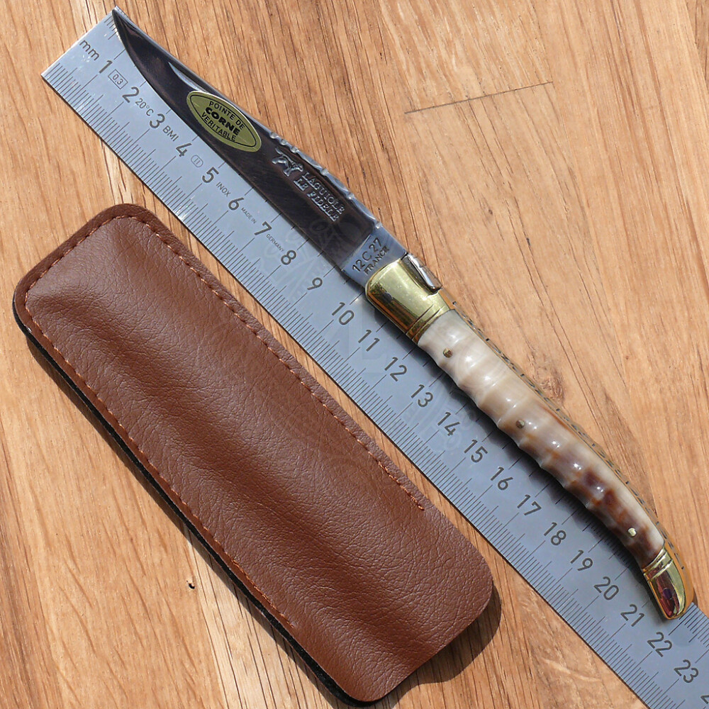 Laguiole kapesní nůž Antilopa je opravdu luxusní o ojedinělý nůž. Jeho rukojeť je totiž vyrobena z antilopího rohu a tím se rozhodně mnoho nožů chlubit nemůže. V našich končinách se setkáme spíše se střenkou z jeleního parohu, proto je tento nůž opravdovým unikátem. Délka čepele je 100mm. Více informací k produktu ...