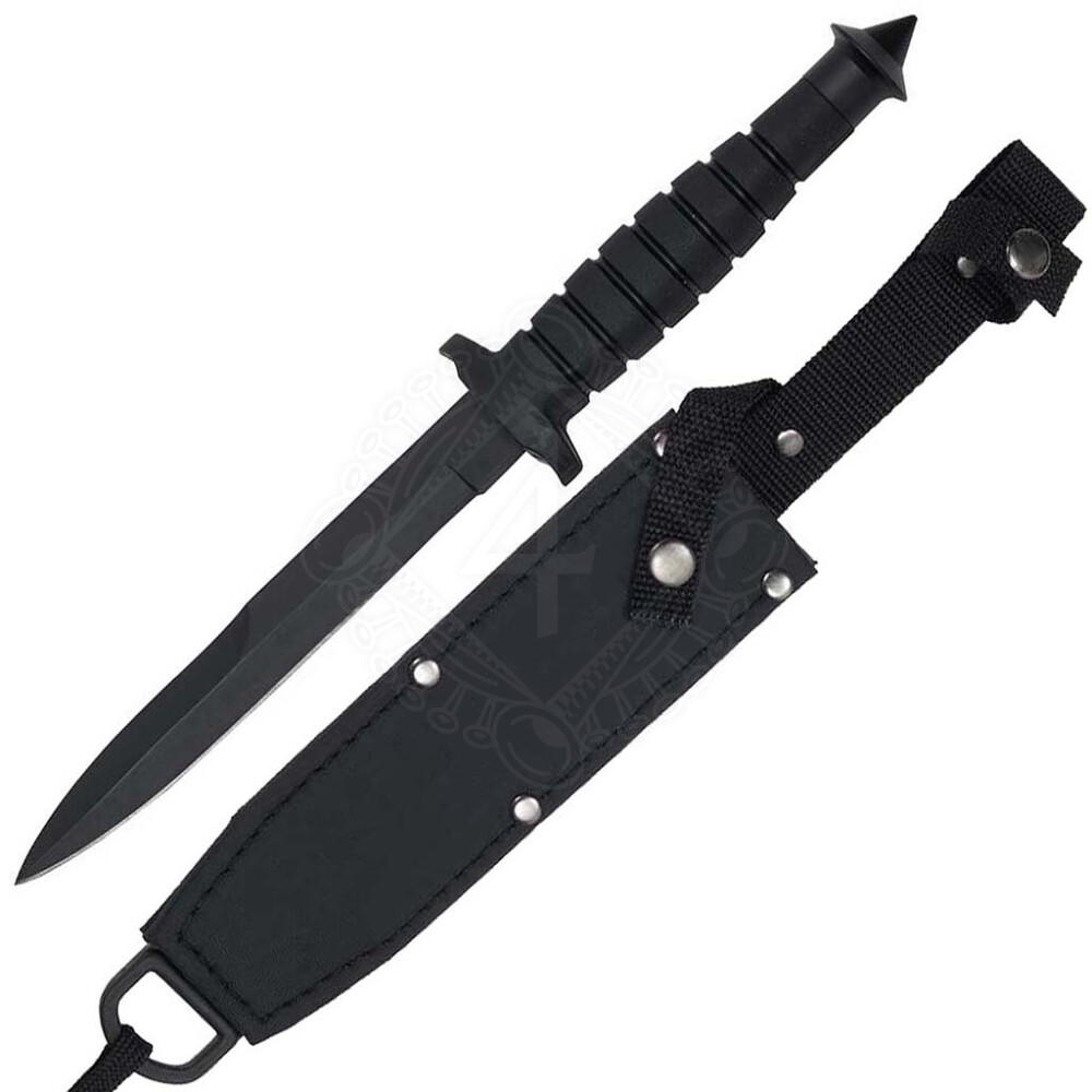 Útočný nůž s černou čepelí z uhlíkaté oceli