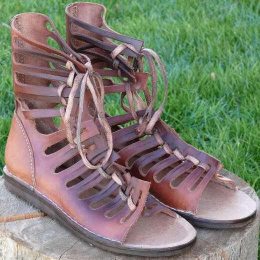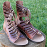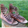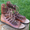 Kotníkové kožené sandály zdobí kožené pásky. Skrz pásky se provléká šňůrka, která sandály zapíná. Bězná výška těchto římských sandalí je cca 18cm. Více informací k produktu ...