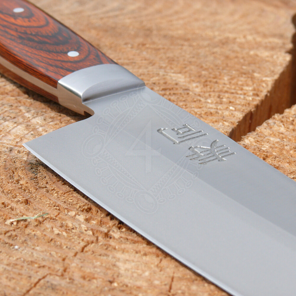 Asijský kuchyňský nůž Šéfkuchař je vhodný pro profi kuchaře i pro amatérské milovníky dobré kuchyně. Nýtované opláštění střenky je ze dřeva pakka. Délka čepele je 190mm. Celková délka kuchyňského nože je 310mm. Více informací k produktu ...