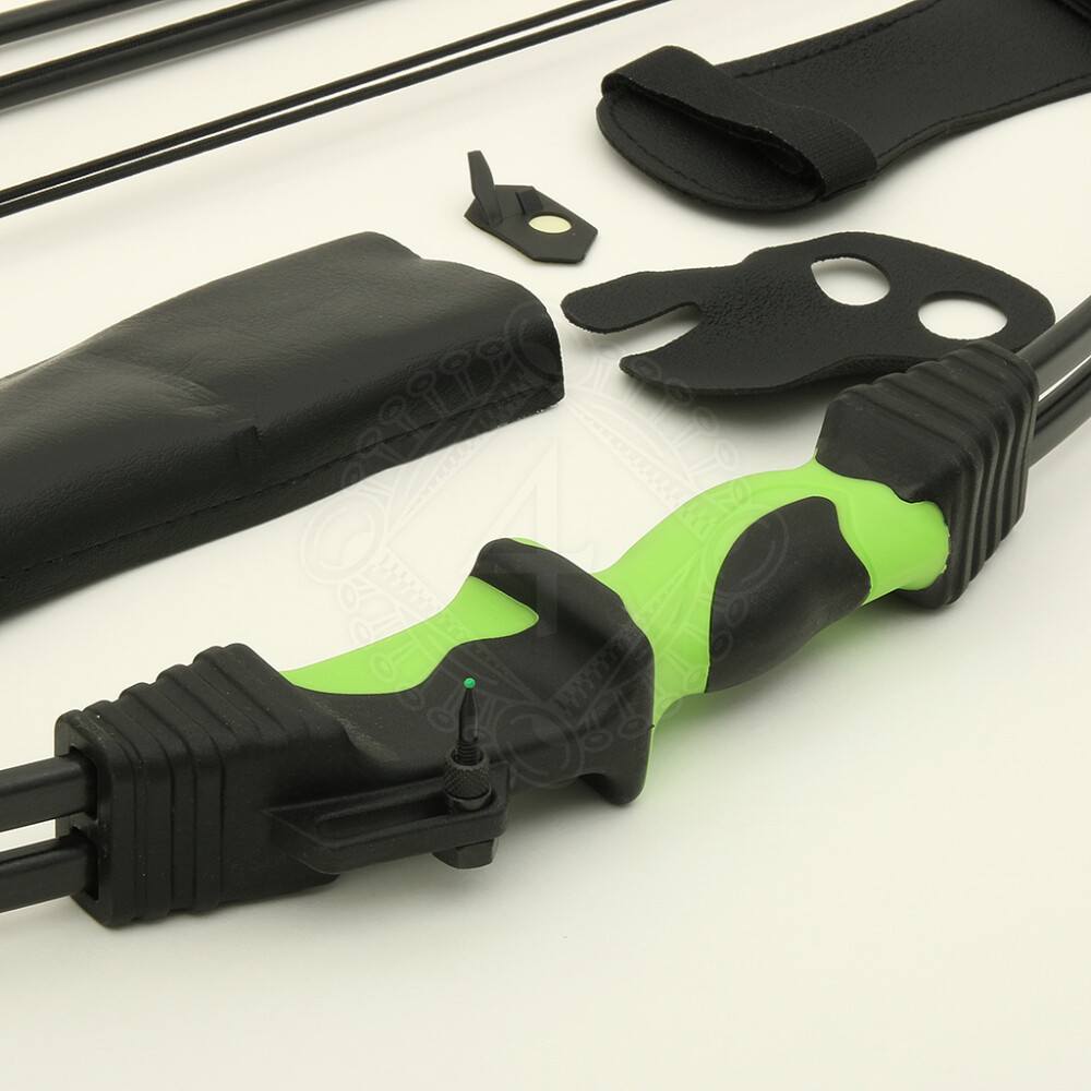 Plastová základka se nalepuje do výklenku nad rukojetí. V ceně jsou zahrnuty 2 sklolaminátové šípy, toulec, chránič paže a prstu –tzv. TAB.