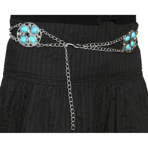 Řetízkový opasek s tyrkysovými kameny; sada 5 kusů