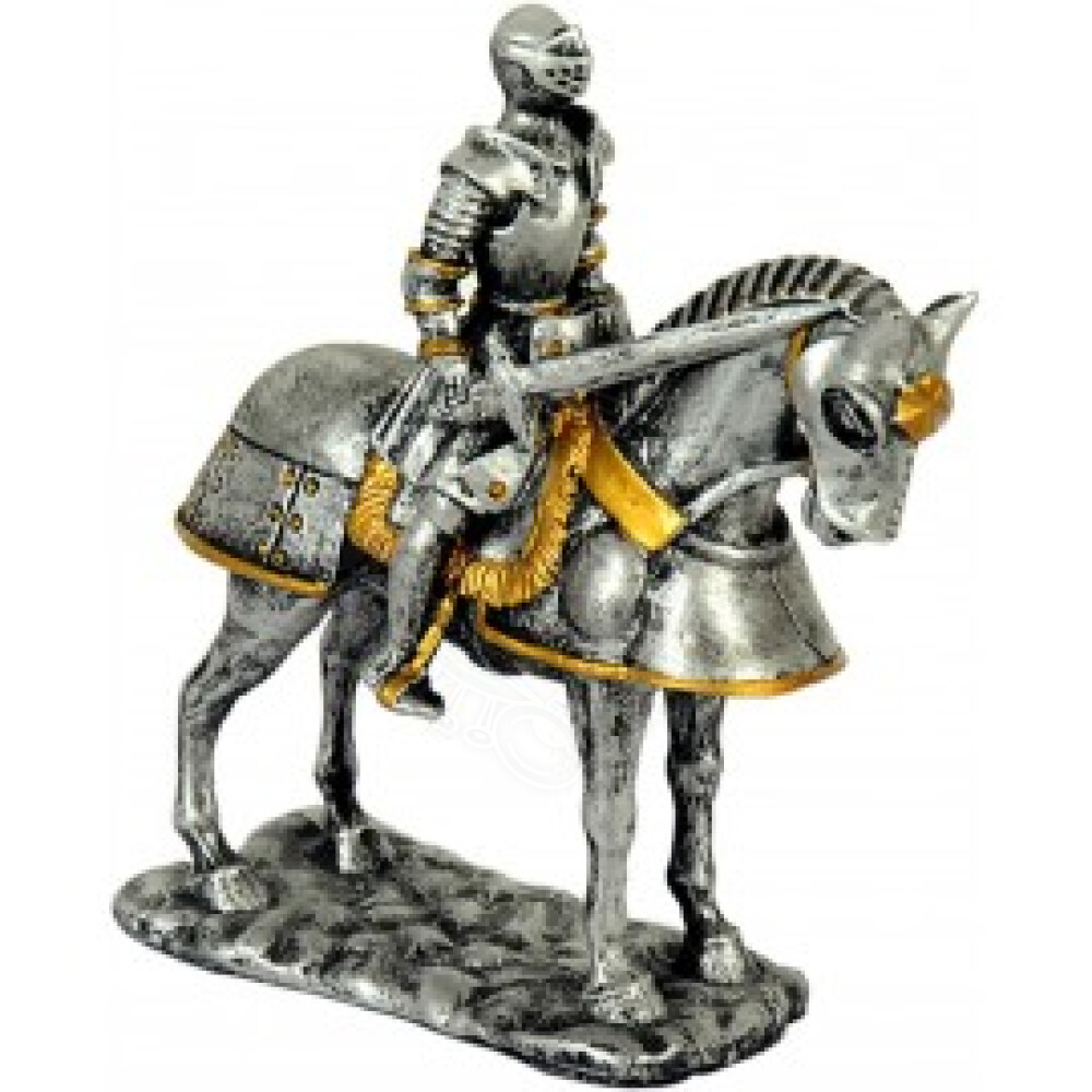 Soška Nebojácného Rytíře na Koni je krásně zpracovaná soška, vhodná jako originální dekorace do každého interiéru. Můžete si ji postavit do obývacího pokoje, ložnice či pracovny, zkrátka kam se Vám bude chtít. Soška je vyrobena ze syntetické pryskyřice, ale její povrch je upraven tak, aby vypadala jako skutečná rytířská zbroj. Provedením budete nadšeni! Materiál je pevný, ale není nerozbitný, zvláště meče či tenké části jsou náchylné k nárazu. Při dopadu na zem je velice pravděpodobné, že dojde k rozbití či poškození, umístěte tedy sošku na stabilní místo z dosahu dětí. Soška Nebojácného Rytíře na Koni je krásně zdobená a ručně malovaná ''zlatou'' barvou. I když se nejedná o pravé zlato (tato varianta by byla velice drahá) vypadá barva velice autenticky a na první pohled zaujme.