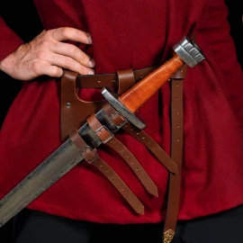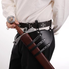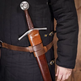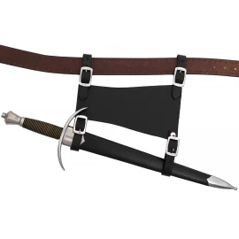Praktický a levný pomocník pro snazší nošení meče. Nenabízí sice takový komfort, jako kompletní pochvy na meče, pro meče s tupými čepelemi však postačí a dostatečně poslouží. Navíc při ztrátě nebo poškození peněženka nezakrvácí ;)