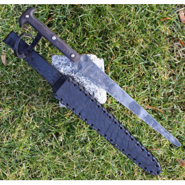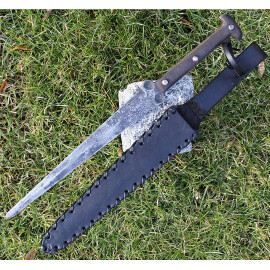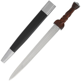 1xTato Skotská zdobená dýka s 30cm dlouhou čepelí je ozdobena leptem s tradičními skotskými motivy (listy a bodláky) na obou stranách čepele. 12,7cm dlouhé falešné ostří a vroubkovaný vzor na čepeli dodávají dýce jedinečný vzhled. Černá vroubkovaná dřevěná rukojeť má krásný vyřezávaný vzor prokládaný kovovými kolíčky. Pochva je ze dřeva potaženého kůží s kovovým oplátováním. Pojem „Dirk“ pochází ze skotštiny a označuje dlouhou dýku, popřípadě krátkou čepel vsazenou v rukojeti dýky. Původ slova se odvozuje z galského sgian dearg (červený nůž). Více informací k produktu ...