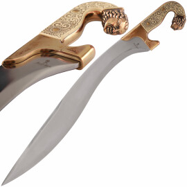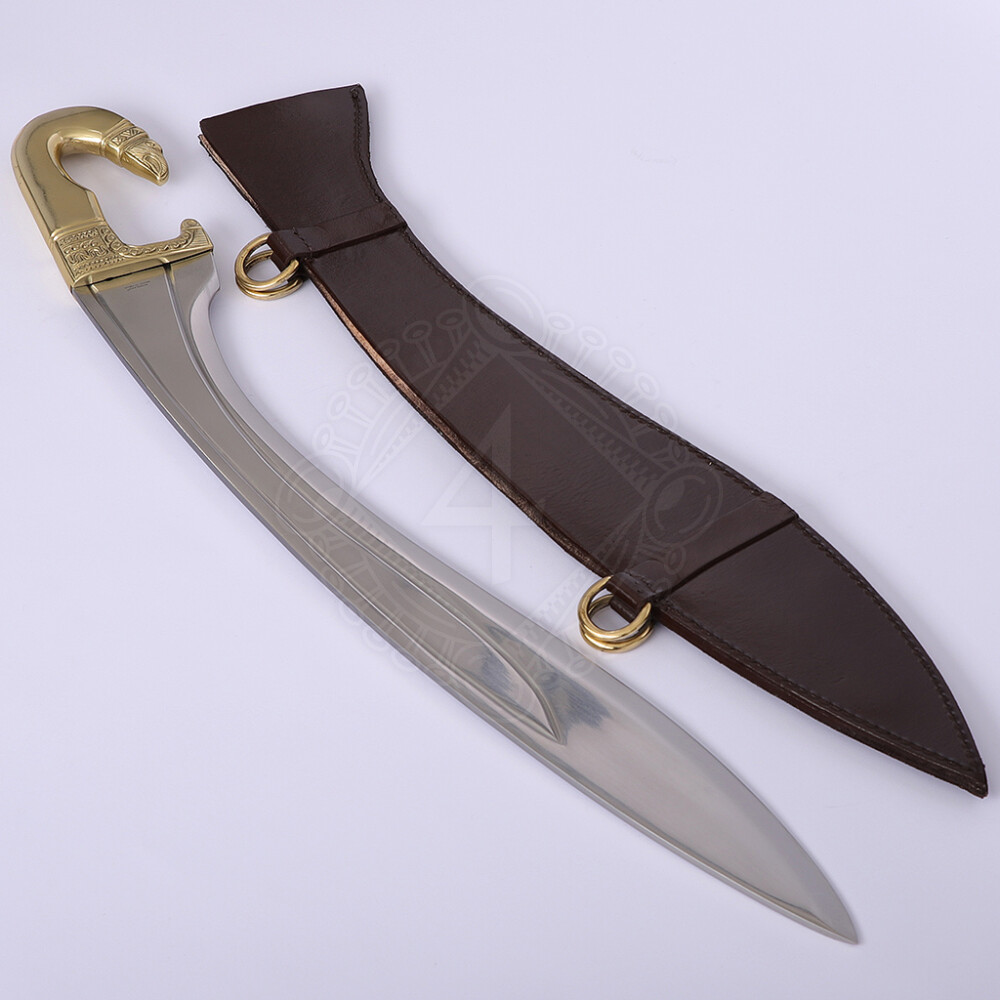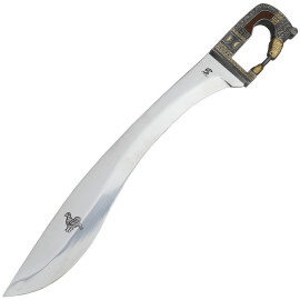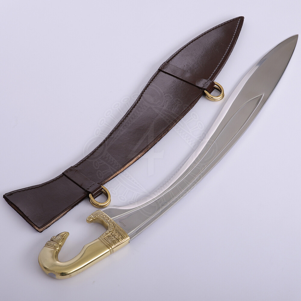 Tento populární keltsko-iberský meč je vybaven čepelí z uhlíkaté oceli 1065. Rukojeť je odlitá z mosazného masivu. Falcata byla používána španělskými žoldáky pod vedením Hannibala ve druhé Punské válce proti Římanům. Více informací k produktu ...