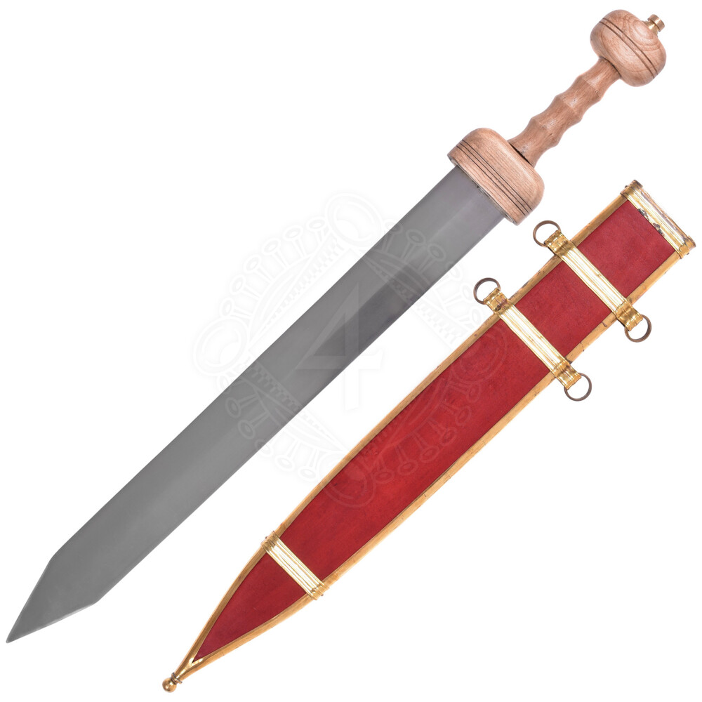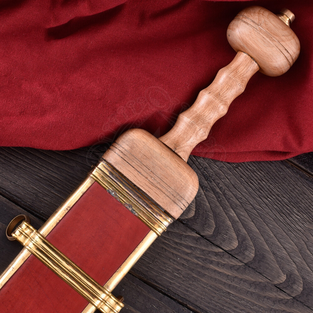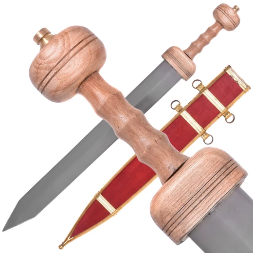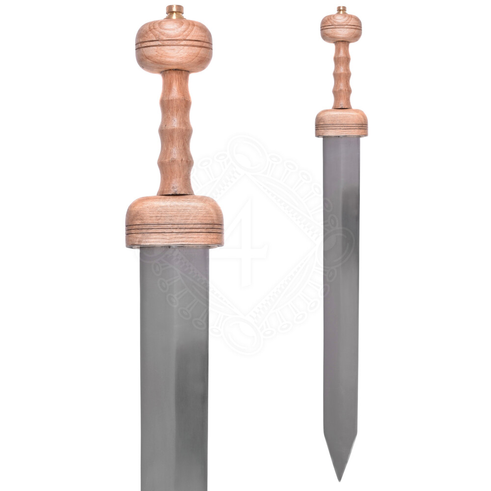 2xGladius, jako standardní zbraň římských legií až do 3. století, se vyskytuje v různých variantách. Zde nabízená replika gladie typu Pompeje se používala od 1. století. Tento meč má čepel z uhlíkové oceli, která je rovná a hladká – čistě ve svém typickém stylu. Rukojeť a hlavice jsou vyrobeny ze dřeva a jsou k čepeli upevněné pomocí mosazné matice. Do záštity je ze strany čepele zabudovaný ochranný mosazný plech. Více informací k produktu ...