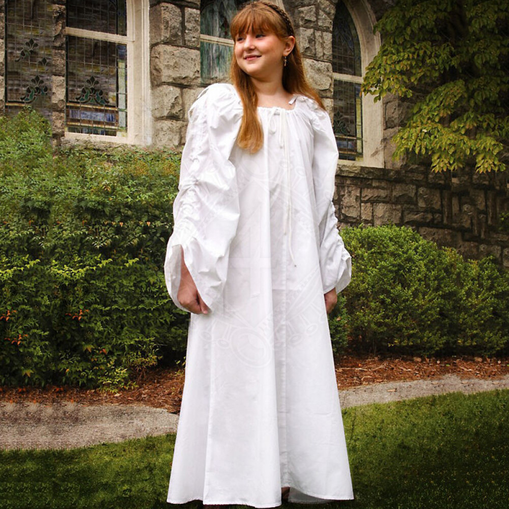 Tato univerzální dětská košilka je určena pro nejmladší ze středověkých dam. Slouží také jako spodnička pod šaty bez rukávů a současně jako noční košilka. Keltská košilka má hodně dlouhé rukávy zakončené bílým lemem a uprostřed jsou protažené stužkou a dají se libovolně stáhnout. Také dekolt se dá upravit pomocí stuhy. Více informací k produktu ...