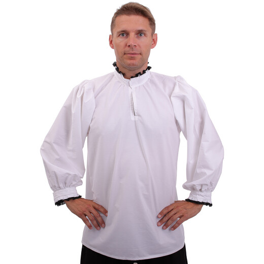 Přestože móda ve středověku byla jiná, než jak ji známe dnes, je možno Tudorovská košile Jindřich VIII zahlédnout i v dnešní době, je licenčním výrobkem televizního seriálu Tudorovci. Košile s dlouhými rukávy je vyrobena z jemné čisté bavlny, a proto je lehká, pohodlná, ale také odolná. Zapíná se a rozepíná se pomocí dvou půvabných háčků, které jsou umístěny v oblasti krku. Decentní černé volánkové okraje lemují nejen límec, ale i lemy rukávů a dodávají bílé košili harmonický vzhled. Více informací k produktu ...