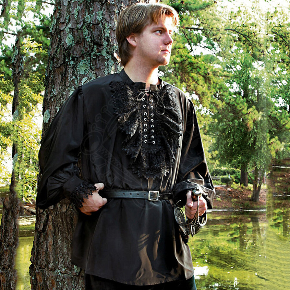 Tento všestranný typ košile byl oblíben v mnoha obdobích, dokonce ji oblékali slavní angličtí spisovatelé a básníci jako P. B. Shelley či John Keats. Opravdového rozkvětu se tato móda dočkala v 17. století. Bez ohledu na povolání, ať básník, filozof, princ či pirát, košile byla mezi muži v období renesance velmi oblíbená. Vzdušné rukávy jsou ukončeny krajkovými manžetami a na prsou je košile ozdobena krajkou též. Černá košile Básník je čistě romantickým oblečením! Více informací k produktu ...