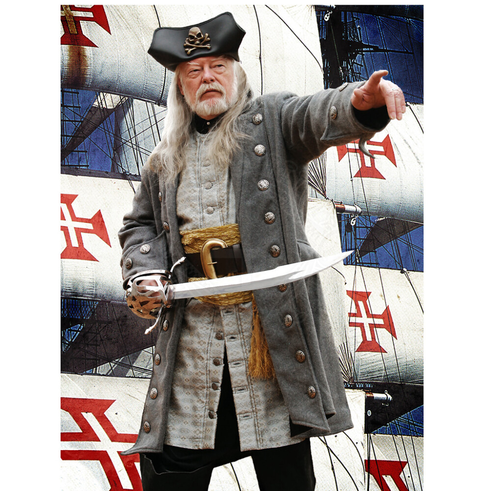 Ambiciózní pirát klade na svůj kabát stejné nároky jako ostatní. Hlavní důraz je kladen na odolnost, neboť kabát je vystavován mořské soli a větru. Šedý kabát vyrobený z těžké vlny tyto požadavky splňuje. Díky dvěma řadám knoflíků se dá kabát zapnout na levou či pravou stranu, aby odolal i tomu nejsilnějšímu východnímu větru. Na zádech je popruh, díky kterému si kabát můžete přizpůsobit postavě. Díky skvělému zpracování má náš kabát potenciál stát se legendou sedmi oceánů.  Ještě něco, do velkých kapes se vejde velká spousta krvavých peněz. Více informací k produktu ...