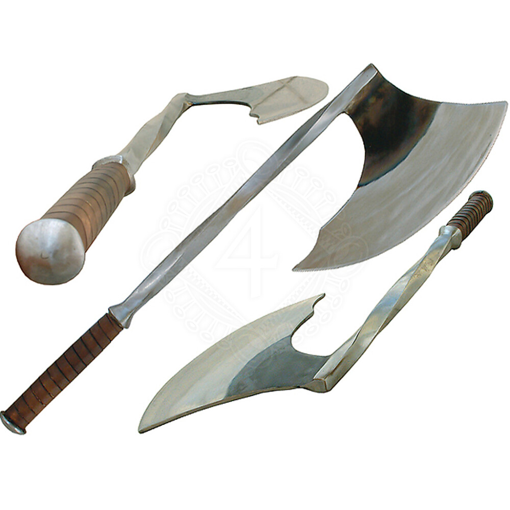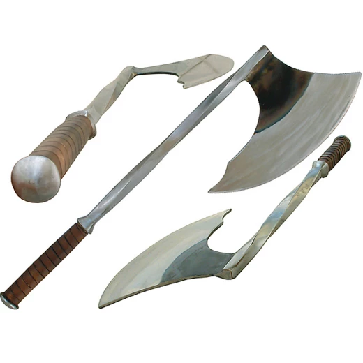 Ve starověku měly sekery i své rituální funkce při obětování zvířat, používaly se např. na starověké Krétě v Mínojské kultuře - známá je posvátná sekera Labrys z pověsti o řeckém hrdinovi Théseovi. Bojové modely ze sekce Předgotické sekyry (Vik., Kelt.) a Gotické sekyry vyrábíme jako repliky zbraní - ty se od seker určených např. pro dřevorubce podstatně liší. Topůrka mají delší a těžší a břit mohou mít na obou stranách, eventuálně mají na druhé straně i hrot. Hrot může být i ve směru topůrka (topůrko se pak zasouvá do prohlubně, nikoliv do otvoru). Válečné verze byly užívány zejména v severní Evropě a proslavily je nejvíce Vikingové. Nabízíme také sekery outdoorové a vrhací sekery.