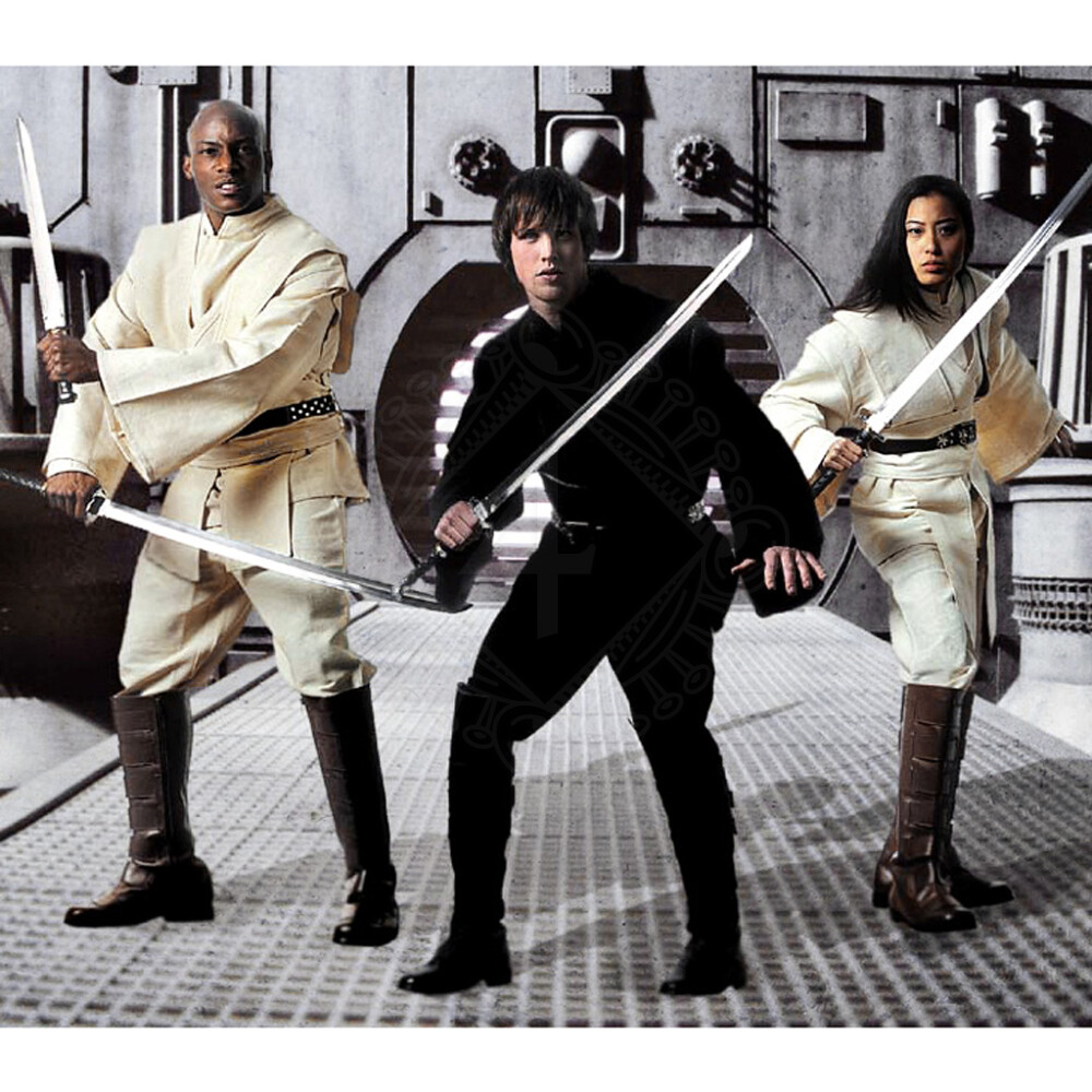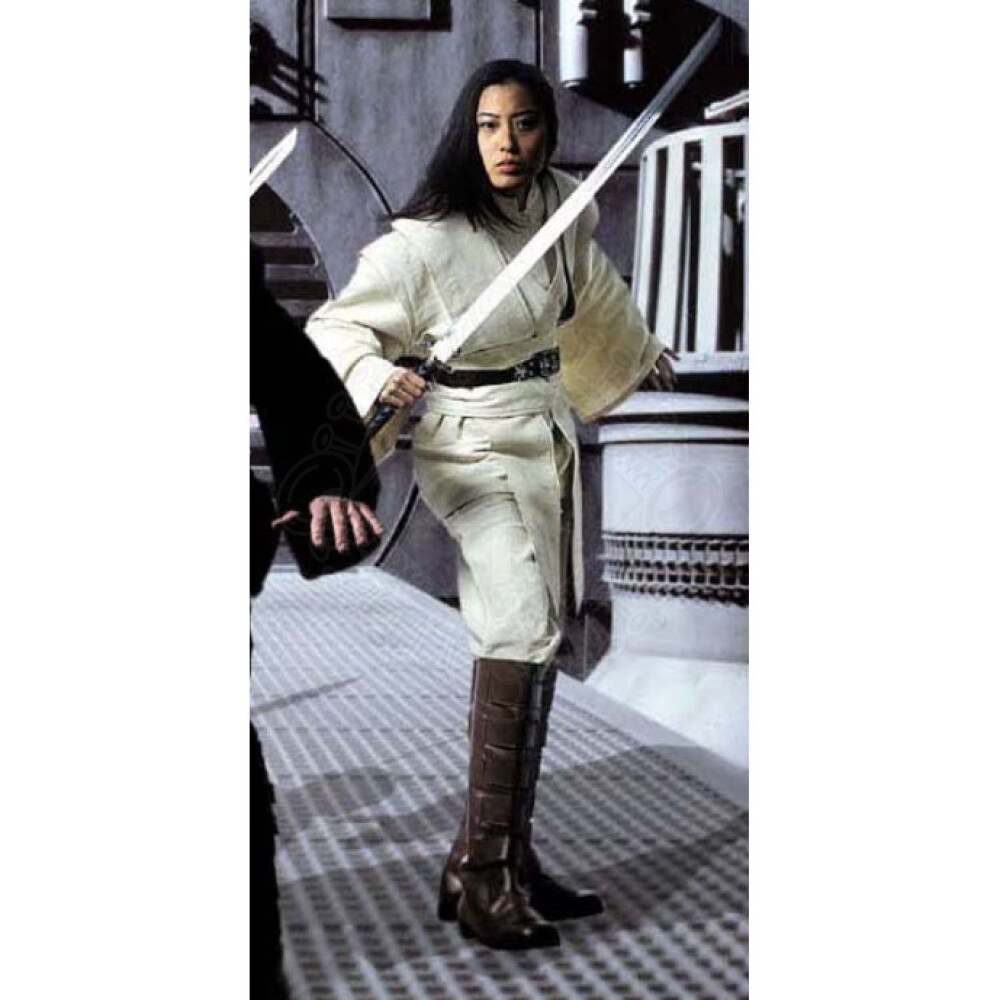 Pojem rytíř není nutně spojen s minulostí, jak dokazuje náš galaktický rytíř. Jehož hnědé oblečení splňuje požadavky na pohodlný pohyb a eleganci daleko lépe než jiné, k bojovému umění určené oděvy. Tento celkem čtyřdílný kostým je nevtíravý díky své hnědé barvě. Na tom ani stojací límeček či ozdobný pásek nic nezmění. Podobný oblek galaktického rytíře z proslulého sci-fi eposu dozajisté neušel vaší pozornosti.