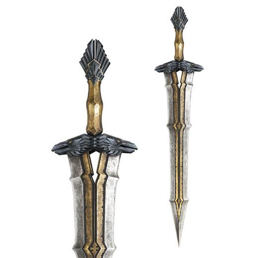 Replika tohoto meče je vyrobena s dokonalou přesností dle filmové předlohy, jen její materiál je Polyresin. Můžete na ní postřehnout i známky ''stáří'' jaké byly na meči Thorina. Špičkovou kvalitu zajišťuje oficiální licence i fakt, že jde o výrobek United Cutlery. Replika je kompletně ručně malovaná a při její tvorbě byl dbán detail na každičký milimetr, výsledek je naprosto fascinující. Prohlédněte si oficiální produktové video, kde je The Hobbit - Královský Meč Thorina Pavézy krásně natočen společně s plaketou.