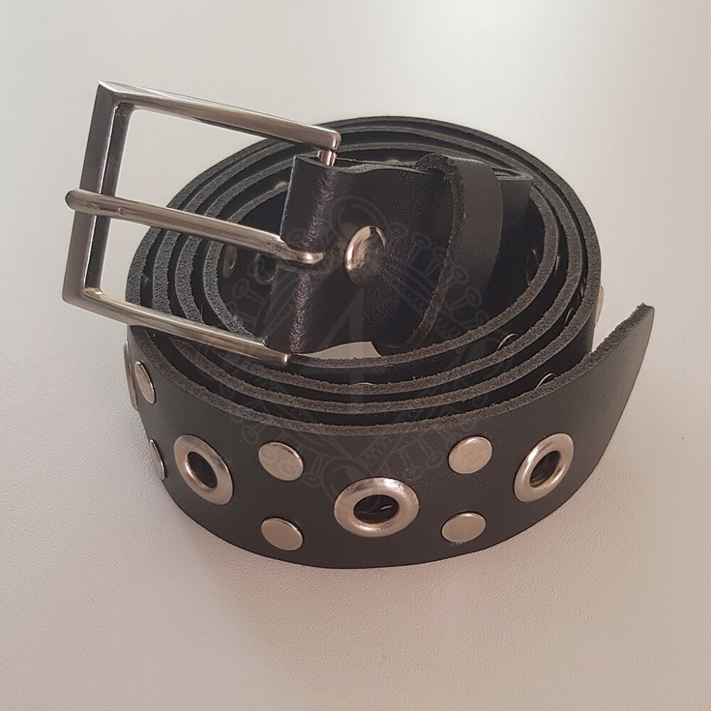 Pásek s kovovými oky je vyroben z kvalitní kůže a jeho šířka je 3cm. Délka je přibližně 70 - 120cm, spona a kovové průchodky jsou vyrobeny z niklu. Tento pásek perfektně doplní Váš kostým. Více informací k produktu ...