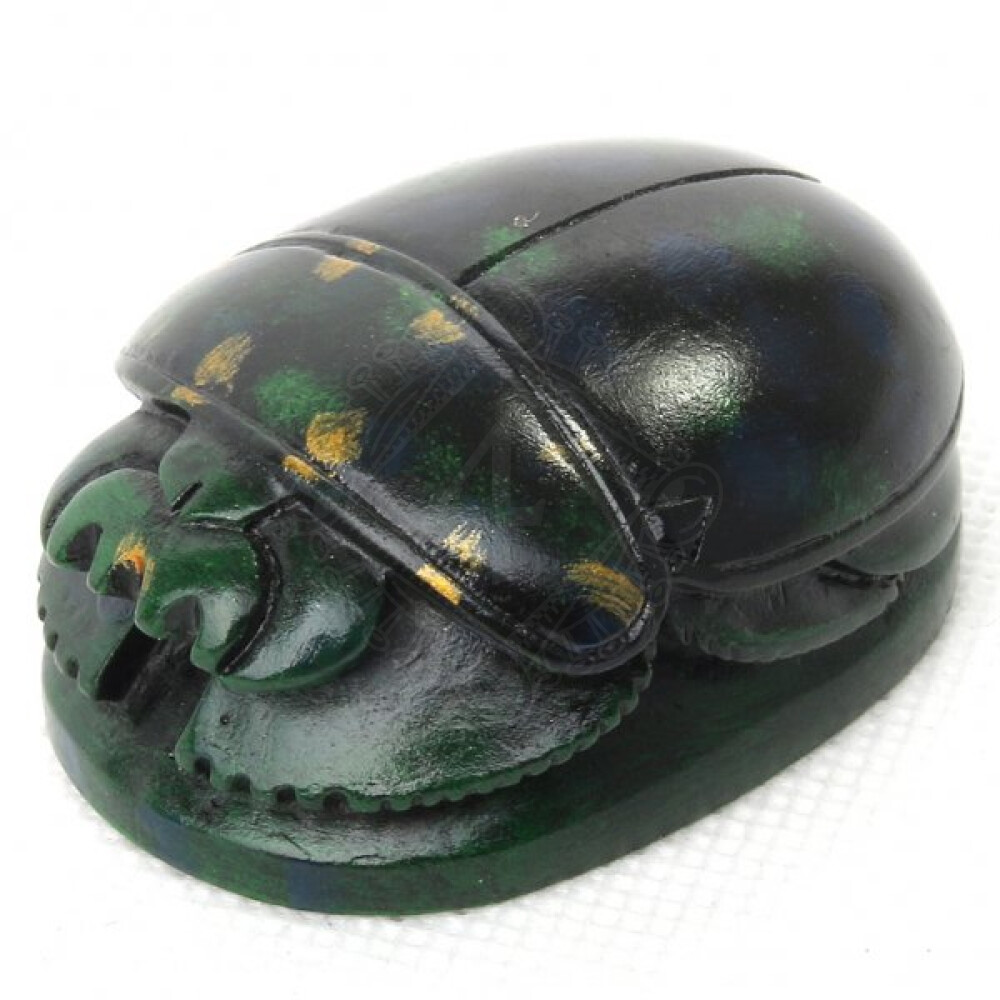 Soška posvátného egyptského brouka Skarabea je vyrobena ze syntetické pryskyřice a zobrazuje jeden z nejposvátnějších symbolů starověkého Egypta. Na spodní straně jsou vyrytá slova z Knihy mrtvých. Skarab byl ve starověkém Egyptě posvátný symbol slunečního a životního cyklu. Více informací k produktu ...