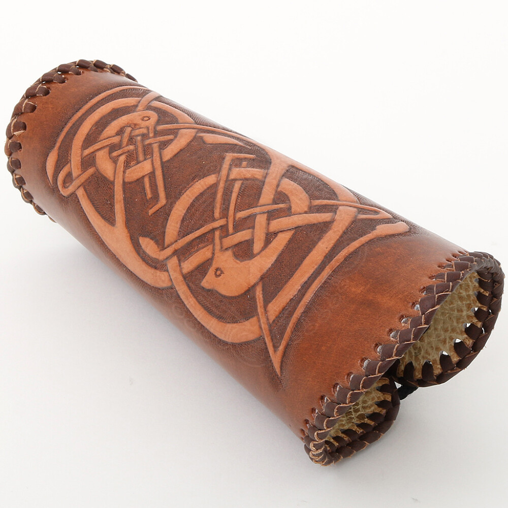 Upozornění: Barva, drsnost a kresba pravé kůže závisí na dostupném materiálu. Jednotný vzhled všech komponentů možného setu (pouzdro luku, chránič předloktí, opasek, brašna, toulec) můžeme garantovat jen tehdy, pokud si vše objednáte najednou a vše může být vyrobeno najednou.