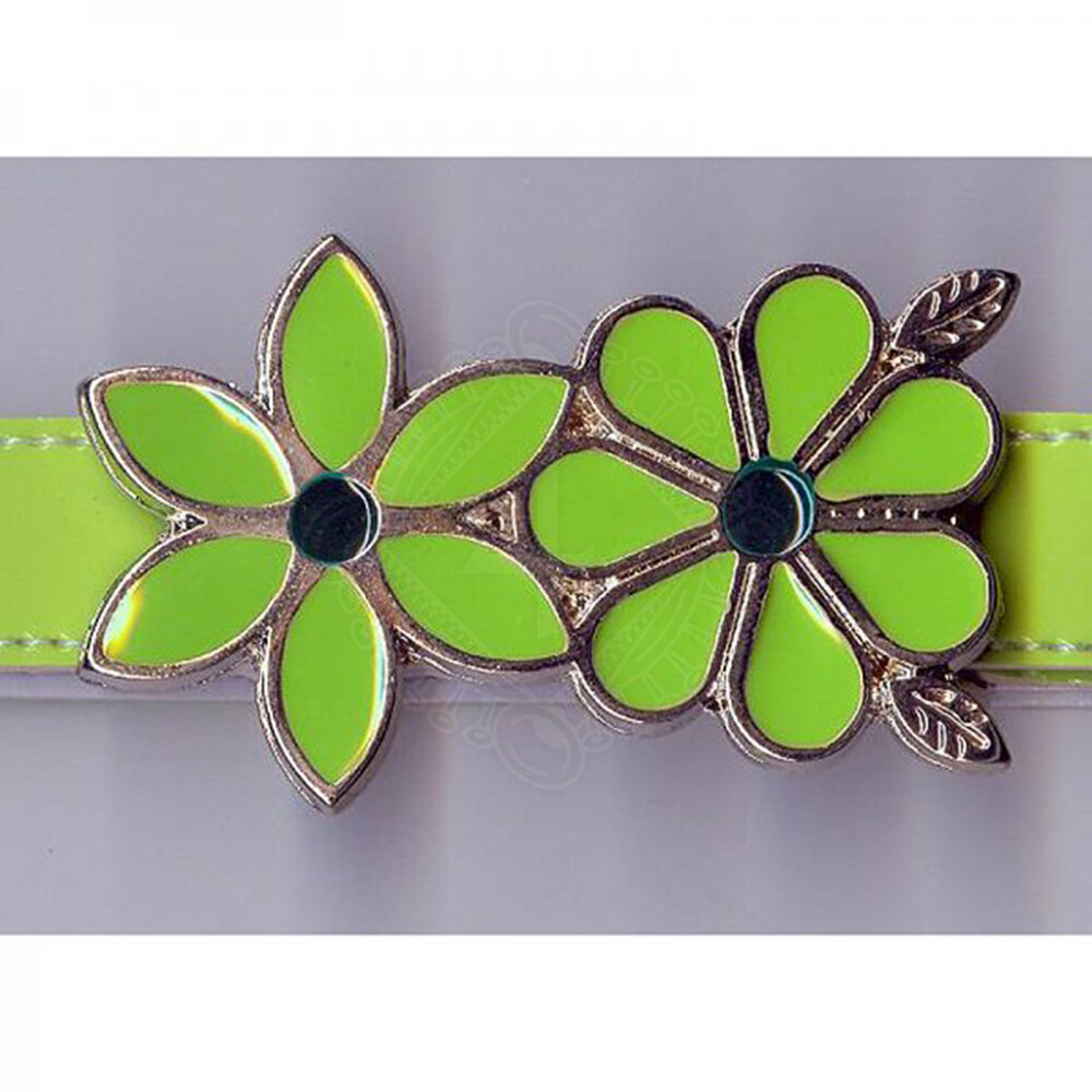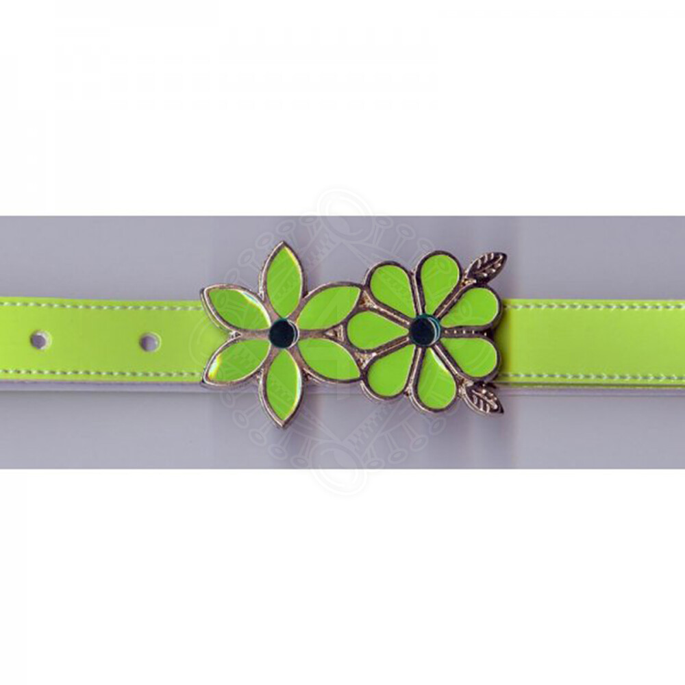 Zelený pásek s kytičkami vyrobený z pravé hověží kůže má délku přibližně 80-120cm. Přezka je vyrobena z niklu a je dekorována zeleným smaltem. Šíře opasku je 2cm. Více informací k produktu ...