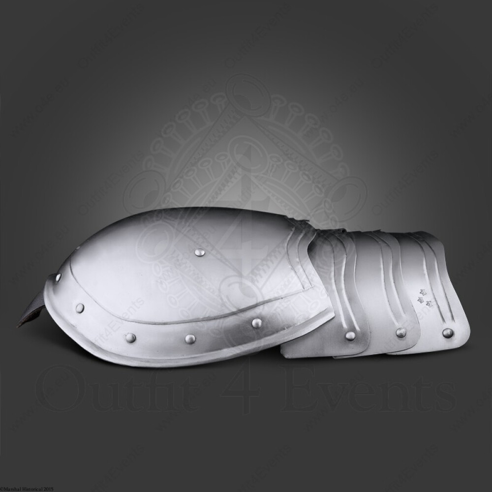 Tyto nárameníky ramenům poskytnou dobrou ochranu před seky mečem, aniž by příliš omezily bojovníkovu pohyblivost. Vyrobeny byly podle předlohy z 15. století, používaly se však až do počátku století 16.
