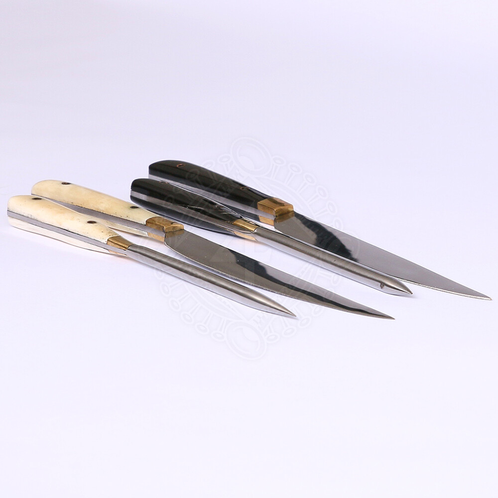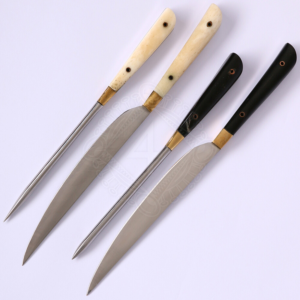 Důležité upozornění: Toto je plně funkční replika jídelní sady nože a bodce v historickém stylu, která se vyrábí v malém množství za použití tradičních metod a technologií. Zákonem č. 258/2000 Sb., o ochraně veřejného zdraví předepsaná certifikace tohoto výrobku by zvýšila cenu tohoto výrobku do nedostupných výšin. Abychom učinili zákonu zadost, jsme povinni zde uvést následující upozornění: Jedná se dekorativní předmět, který není certifikován pro styk s potravinami.