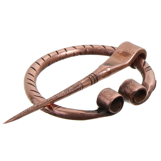 Zaoblené tělo z mědi zdobené vroubky a zarolovanými konci. Pokud náhodou obdržíte sponu s ohnutou jehlou, můžete ji snadno narovnat v ruce, protože měď je poddajný materiál. Více informací k produktu ...
