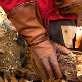 Upozornění: Ačkoliv kůže poskytuje základní ochranu proti oděru, nejedná se o certifikovanou ochrannou pomůcku pro plnokontaktní turnajový boj s těžkými zbraněmi (buhurt, ocelový dlouhý meč). Pro takové aktivity doporučujeme rukavice použít pouze jako spodní vrstvu pod plátové či kroužkové rukavice, pokud to jejich střih dovoluje.