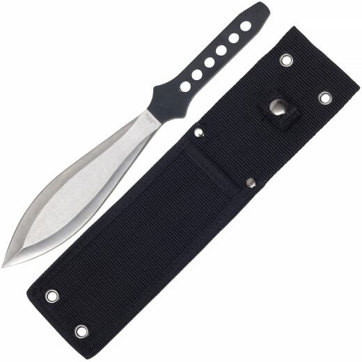 Jedná se o vydařený vrhací nůž speciálního tvaru. Nůž je laserově vypálen a vybroušen z jednoho kusu korozivzdorné oceli. Rozměry nože viz specifikace. Speciální tvar čepele a celkově skvělé vyvážení tohoto modelu je ideálním předpokladem pro přesné vrhání i na větší vzdálenost. Pro hod je možné použít techniku vrhu horním nebo spodním obloukem, viz odborná literatura. Vrhací nůž Flying Blade obdržíte spolu s ochrannou pochvou z odolného materiálu Codura. Celková délka je 26cm. Vyrobeno z nerez oceli 420 o síle 5mm.