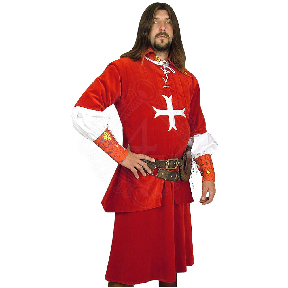 Na rozdíl od fotografie nemá námi nabízený jeden kus Surkotu na přední části vyšitý kříž.