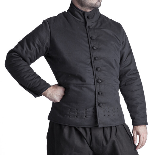 Na rozdíl od běžných prošívanic má tento kabátec zesílená místa (arming points) s obšitými dírkami na ramenou, rukávech a spodním lemu. Ta slouží k přivázání jednotlivých částí plátové zbroje – nárameníků, myšek, chráničů paží i nohavic. Díky tomu zbroj nesjíždí a její váha se rovnoměrně rozloží na celé tělo. Střih je vypasovaný a zapíná se vpředu na řadu knoflíků potažených látkou, což je praktické pod kyrys.