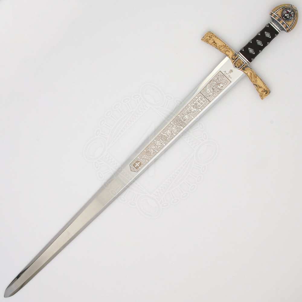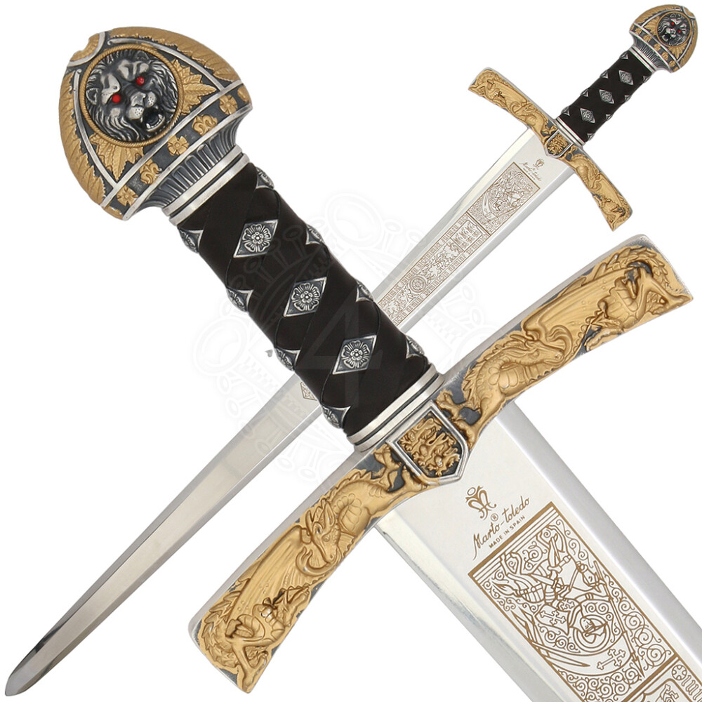 Richard I. (1157–1199) si svou přezdívku „Lví srdce“ (Cœur de Lion) nevysloužil na královském dvoře, ale v bitevní vřavě. Byl to král-rytíř, který strávil většinu svého života na válečných taženích, zejména během Třetí křížové výpravy ve Svaté zemi, kde se střetl se sultánem Saladinem. Richard byl fascinován legendami o králi Artušovi a sám vlastnil meč, který prohlašoval za bájný Excalibur (ten nakonec daroval sicilskému králi Tancredovi). Tento meč od firmy Marto je navržen tak, aby odrážel právě tuto romantickou představu o dokonalém křesťanském rytíři – je to zbraň, která by v legendách zářila v rukou krále.