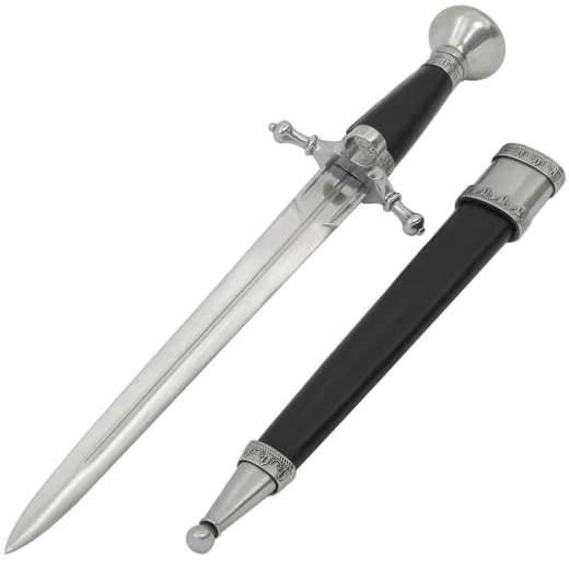 Medicejští byla politická dynastie, bankéřská rodina a později i královský rod, který začal prvně nabírat na významu ke konci 14. století. Tato ušlechtilá dýka s prstenem a krásným filigránem okolo rukojeti i pouzdra zdobila příslušníky mocné královské rodiny, zatímco její lesklá čepel schopná prorazit protivníkovu zbroj vypovídala o nebezpečnosti rodu. Velká hruška jílce zajišťuje vynikající vyváženost a rukojeť potažená měkkou černou kůží spolu s pouzdrem utváří z dýky umělecké dílo. Více informací k produktu ...