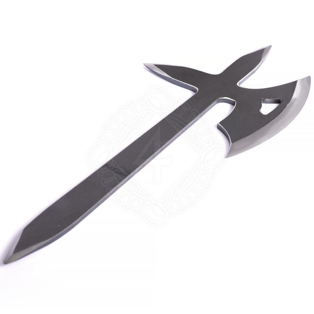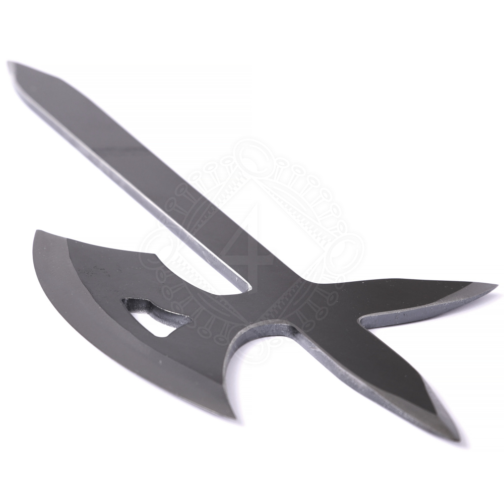 Poznámka: Po dopadu na cíl z měkčích druhů dřev se tato vrhací sekera zabodává pouze bodci, ostří sekery se nezasekává a sekera odpadává. Zasekávání ostří sekery lze dosáhnout pouze při házení na měkké materiály – např. pěnové terčovnice.