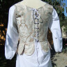 Toto historické spodní prádlo pro dámy z období renesance je vyrobeno z lněné látky. Základ tohoto setu spodního prádla tvoří spodní košilka s dlouhými rukávy lemovaná jemnou krajkou s obdélníkovým výstřihem u krku. Bílá spodnička sahá po kolena. Horní část tvoří šněrovací korzet krémové barvy z brokátu vyztužený kosticí při spodním okraji lemovaný subtilními šosy. Celé nohy kryje krinolína ze lnu s obručemi, které jsou dostatečně robustní, aby unesly i sukni z těžkého sametu. Set historického dámského spodního prádla uzavírají bokové polštářky ze lnu vycpané vatelínem. Více informací k produktu ...