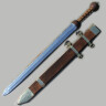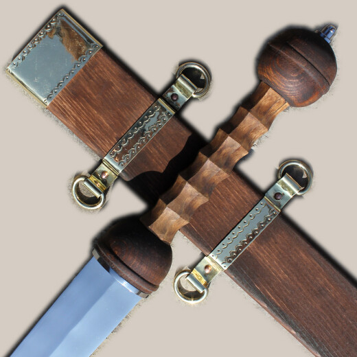 K meči „Dvouruční Římská Spatha Theon“ lze přiobjednat dřevěnou pochvou okovanou mosazí, která není zahrnuta v základní ceně.