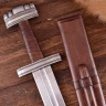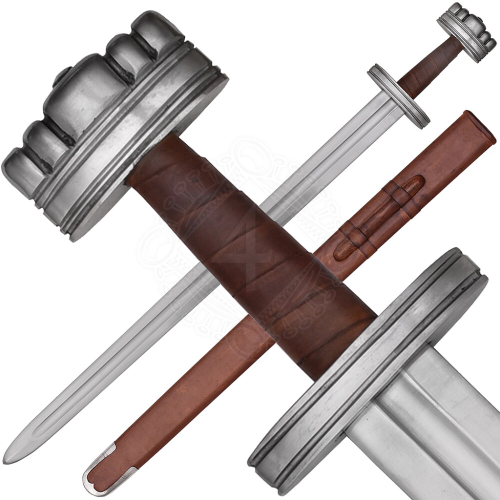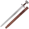 Pochva, kterou obdržíte spolu s mečem, je vyrobena ze dřeva a je ovinutá kůží. Její špička je okovaná plechovým nákončím a pod dřevěným lučíkem protáhnete max. 5cm široký opasek. Jedná se o vikingský meč vhodný na šerm.