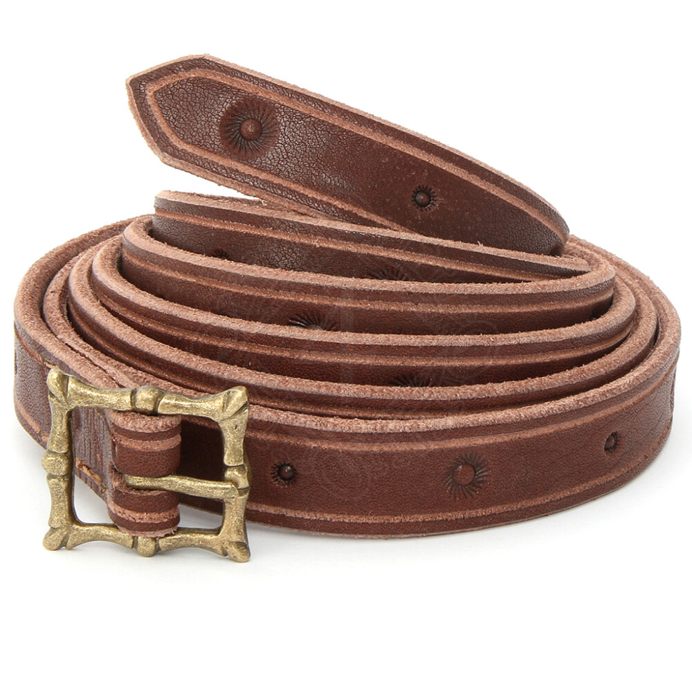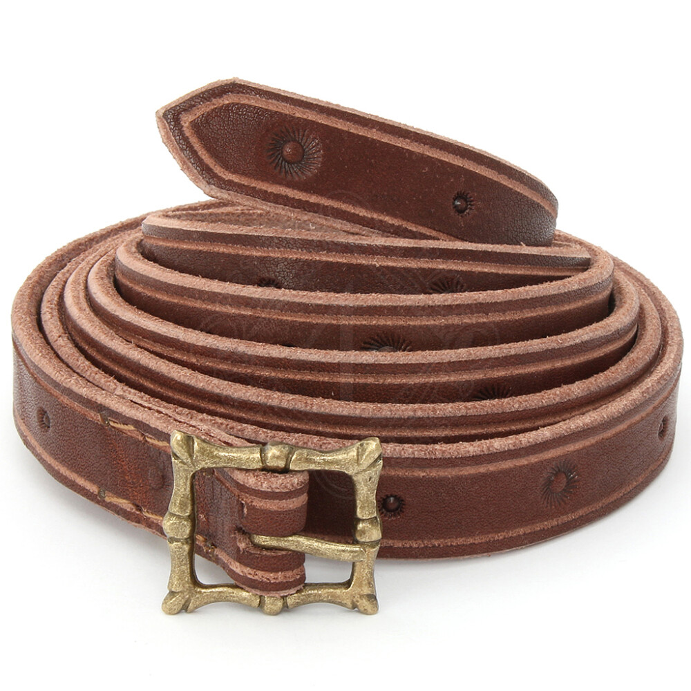 Gotický opasek Andres je vyrobený z hovězinové hlazenice. Zdobený je dobovou ražbou po celé své délce. Kraje opasku jsou zažehlené a nezpůsobují otřepení usně. Po obvodu opasku je vyrytá linka. Obdélníková spona je odlitá z mosazi a je ručně našitá na usňový řemen pomocí lněné nitě. Více informací k produktu ...